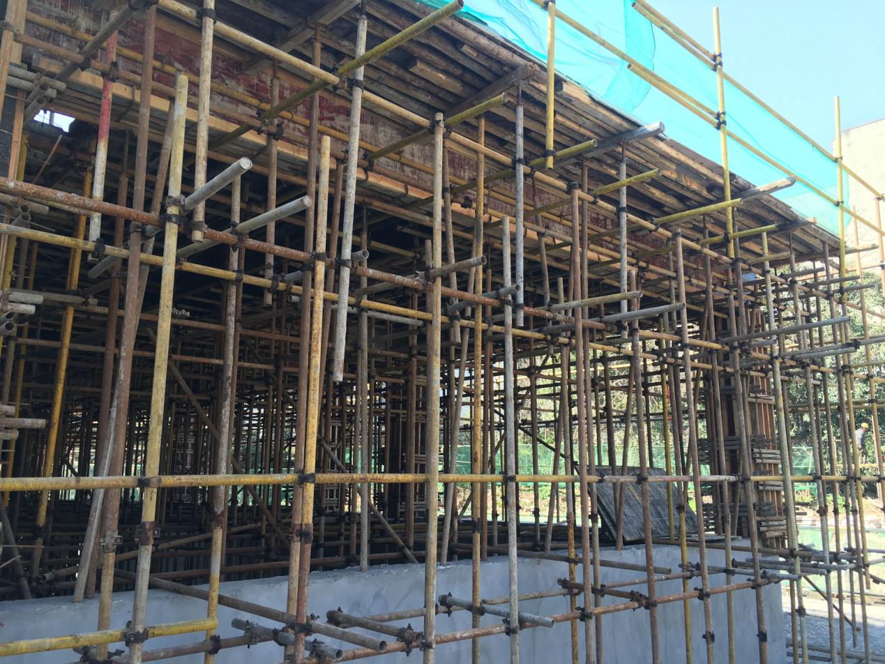 D.外脚手架与模板支撑架混用