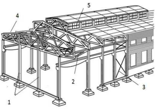 第2题:如图所示工业厂房构造,图示5为(),它具有通风和采光的作用。