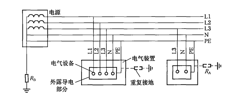 A.TN-S系统为电源中性点直接接地时,电气设备外露可导电部分通过零线接地的接零保护系统,即设备外壳连接到PE线上